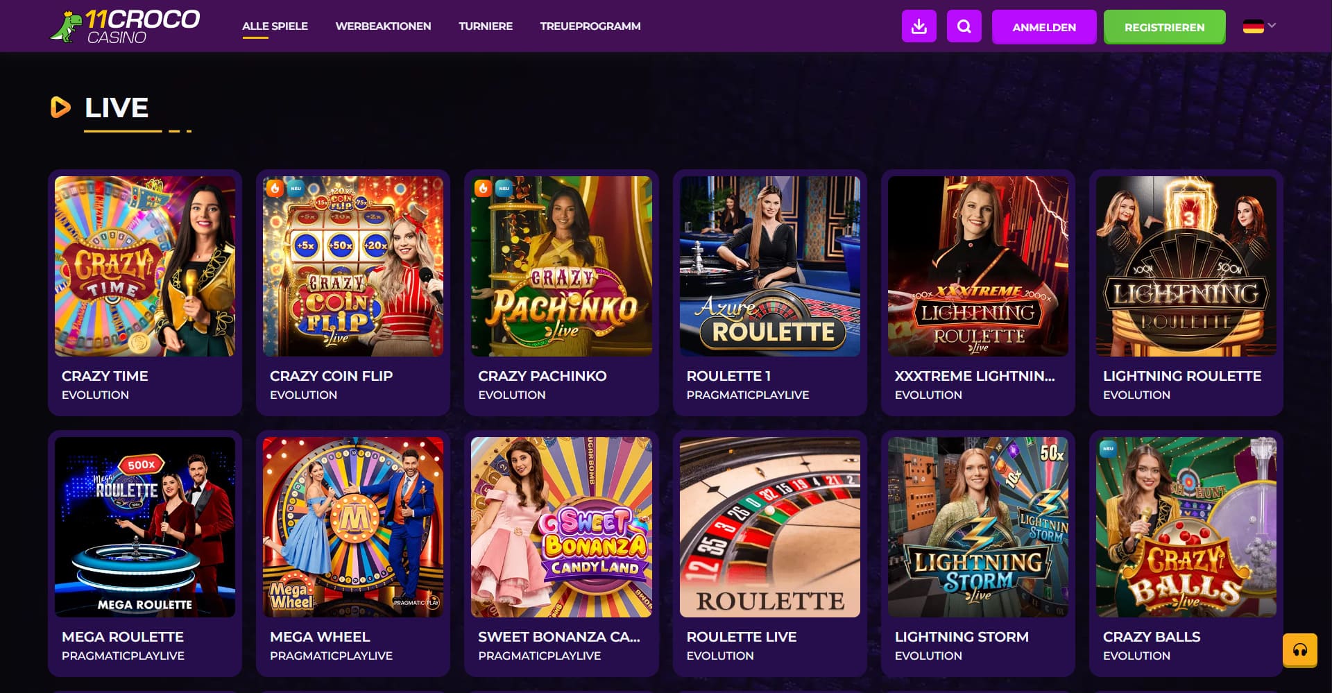 Ganz besonders auch das Live-Casino zieht immer mehr österreichische Spieler zum Spielen im 11Croco Casino für Echtgeld an, weil es nicht nur gute Raten hat und echt aussieht, sondern weil es verschiedene Versionen von den beliebtesten Brettspielen wie Blackjack, Roulette und Baccarat bringt.