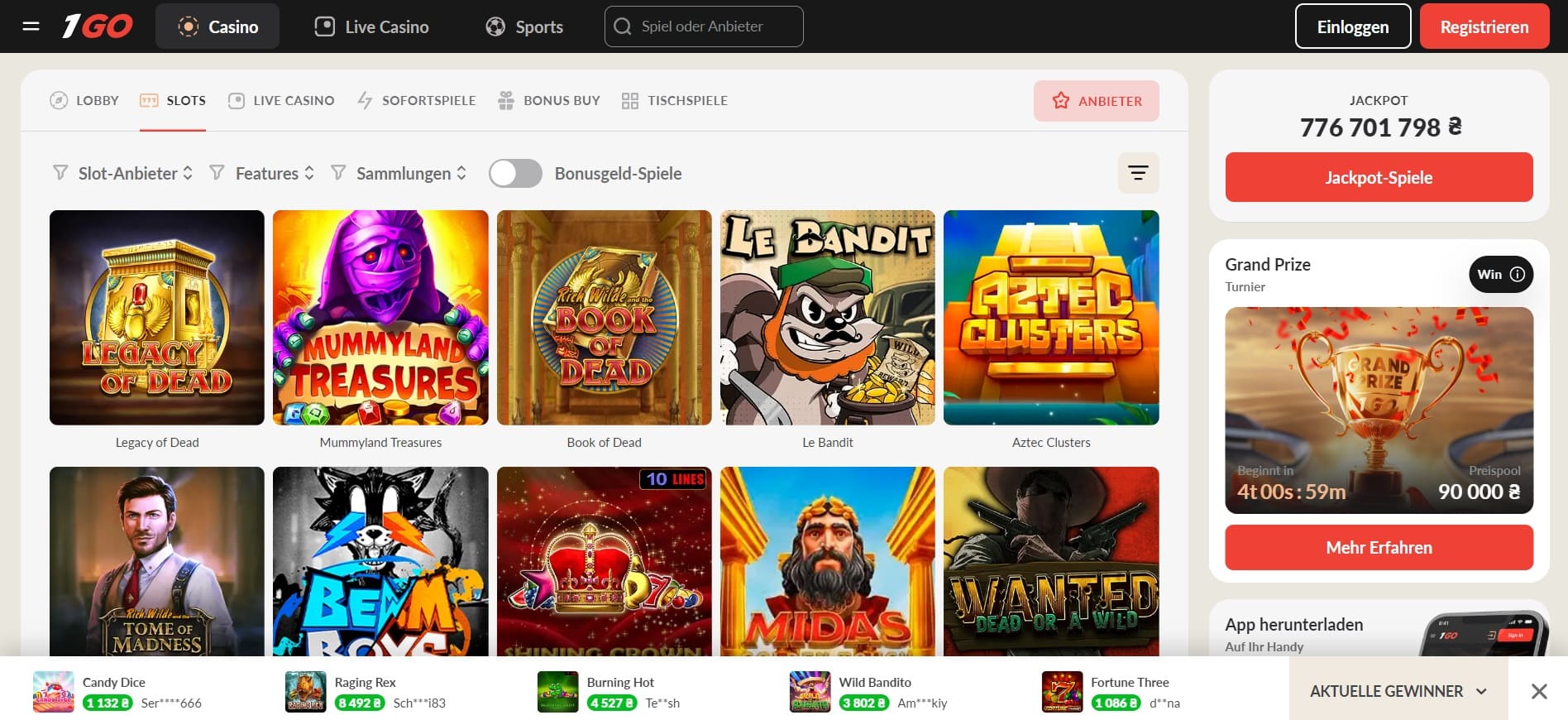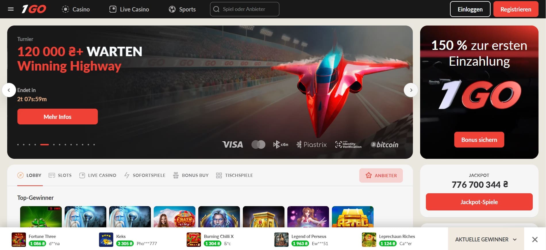Das 1Go Casino Online bietet Interessenten eine Plattform, die zahlreiche Boni und Casino Spiele im Portfolio hat. Wir haben uns das lizenzierte Casino genauer angeschaut und berichten hier über die Ergebnisse aus unserem 1Go Casino Test.