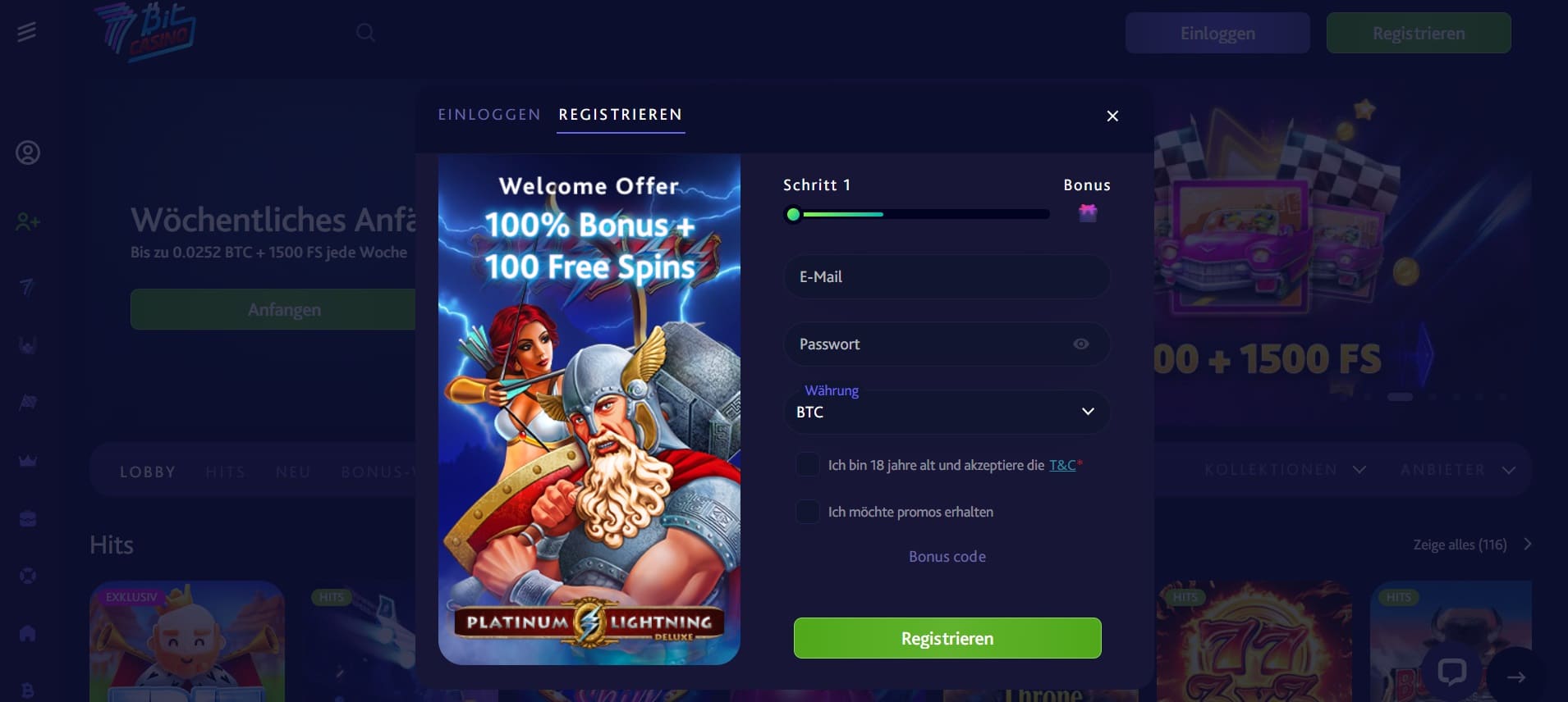- Registrierung im 7bit Casino
