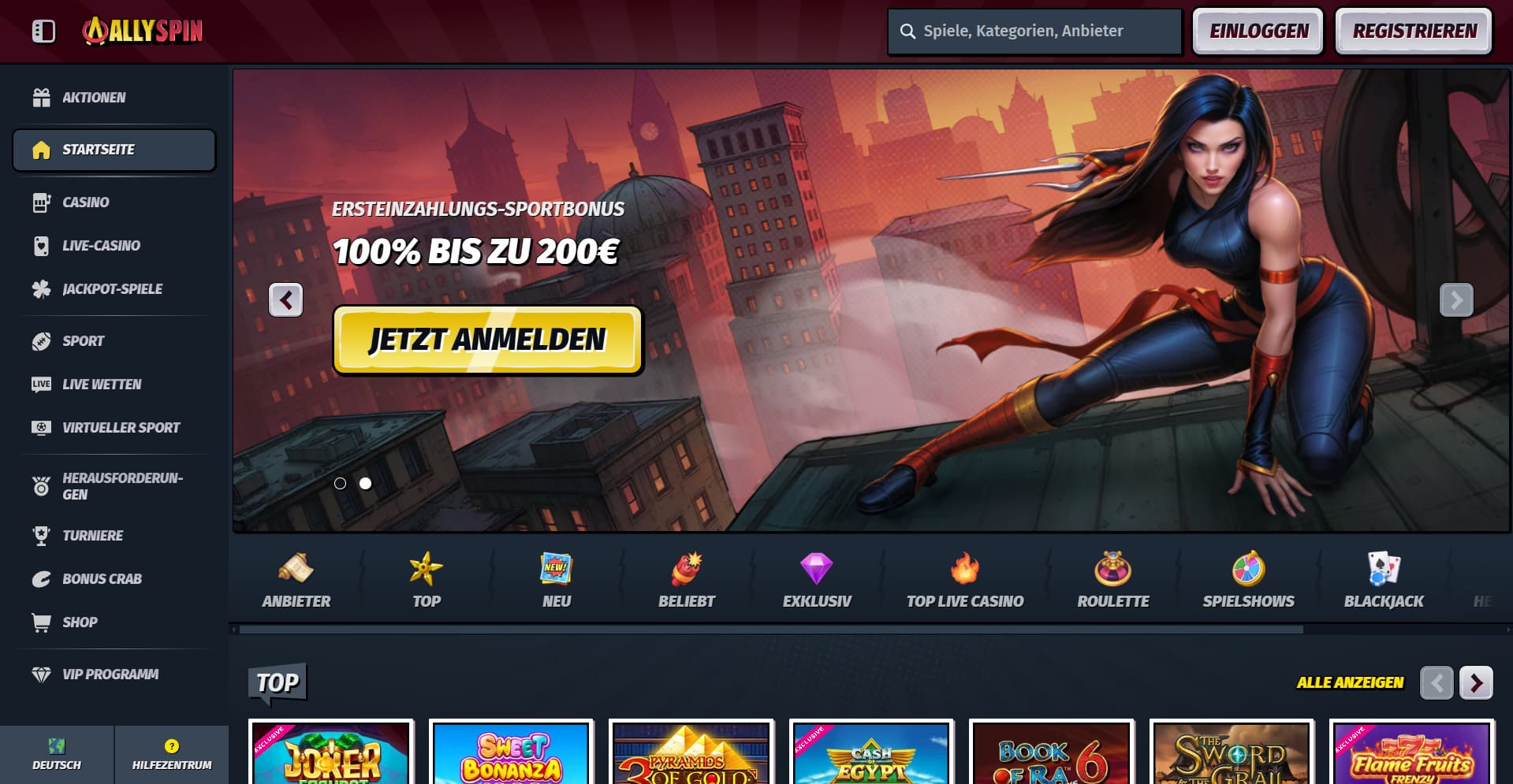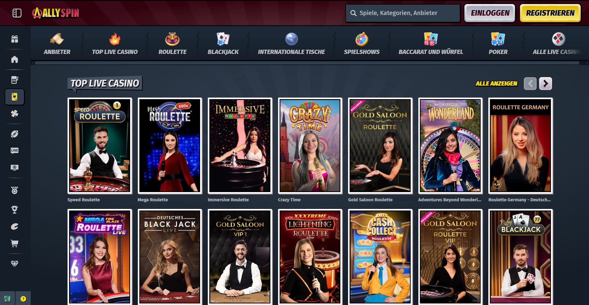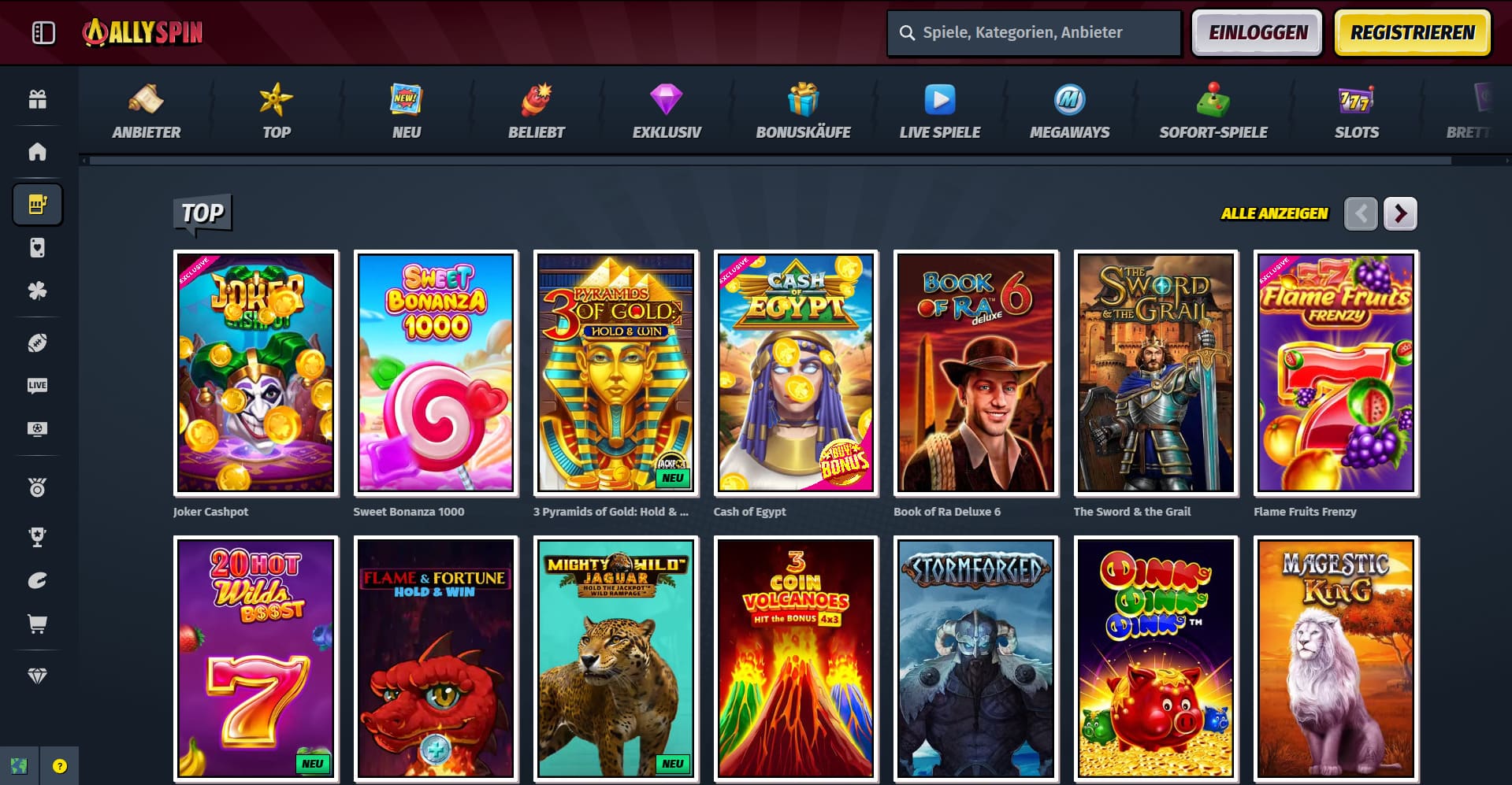 Riesige Auswahl an AllySpin Online Casino Spielen