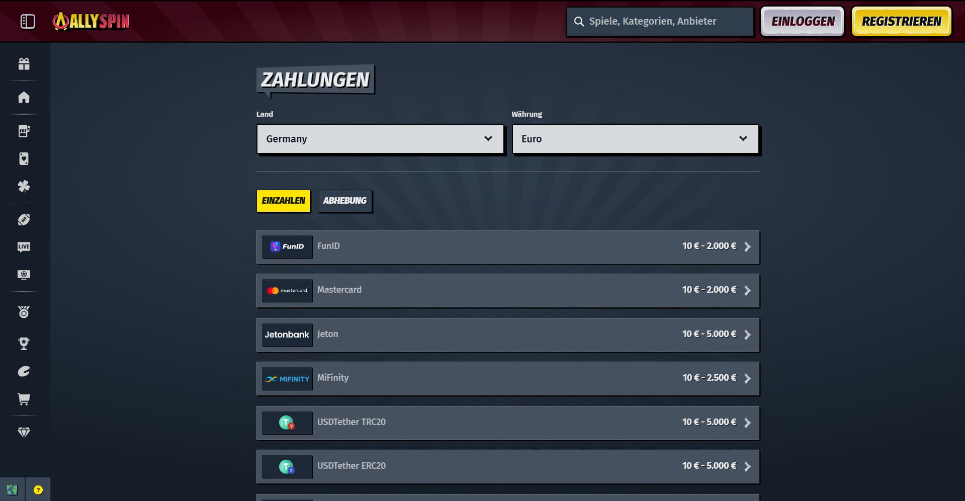 Wenn Sie nicht nur die kostenlose Demo-Version spielen wollen, werden Sie früher oder später Geld einzahlen müssen. Dazu bietet das AllySpin Casino seinen Spielern aus Österreich eine Vielzahl an Methoden an. Die Einzahlungen werden dabei sogar direkt durchgeführt.