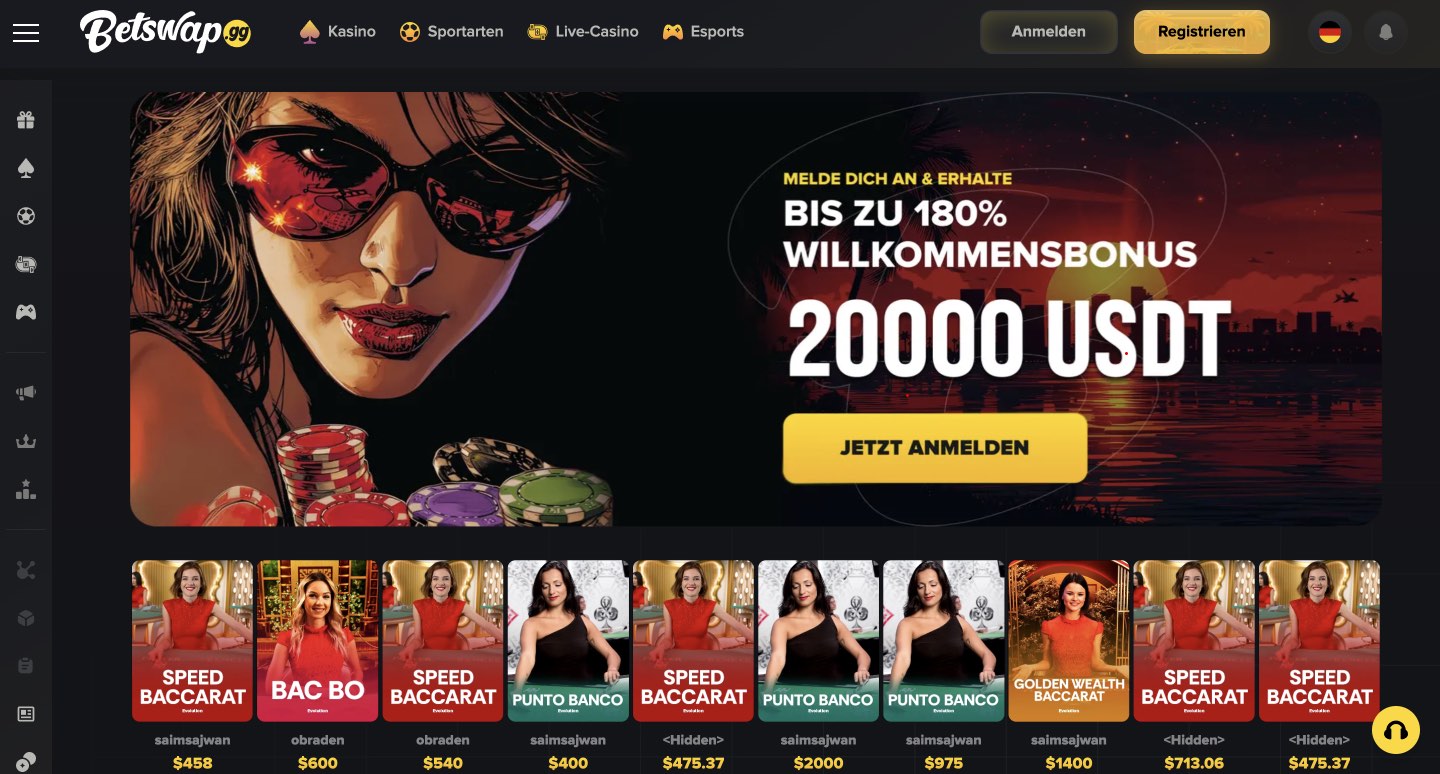 Das betswap.gg Casino ist ein recht neues Casino, welches von der BetBSGG Labs N.V. betrieben wird. Seit 2022 bietet es eine umfangreiche Vielfalt an Casino Spielen, Bonusaktionen und Zahlungsmethoden an. In unserer Bewertung des Betswap.gg Online Casinos in Österreich 2026 schauen wir uns das Casino genau an und finden heraus, ob es sich lohnt, ein Konto zu erstellen. Bleiben Sie also dabei und finden Sie heraus, ob das Betswap Casino die richtige Wahl für Sie ist!