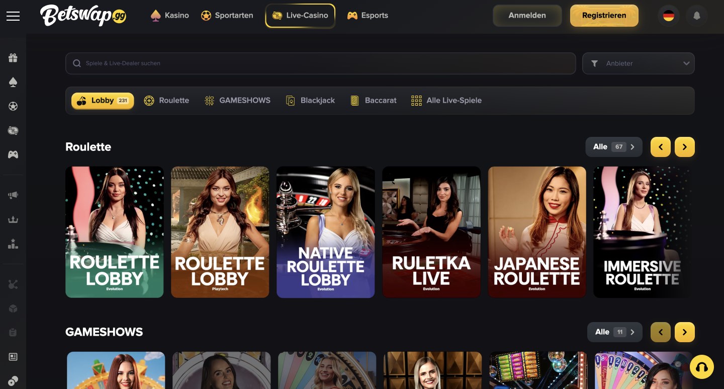 Im Betswap Online Casino finden Sie eine sehr große Auswahl an besten Casino Spielen, sodass Sie hier jeden Tag neue Spiele ausprobieren können, wenn Sie wollen. Nach Ihrer Anmeldung haben Sie Zugriff auf ein Spieleportfolio von mehreren Tausend Spielen. Wenn Sie sich in der Spielelobby befinden, können Sie zwischen Slots, Tischspielen, dem Live-Casino und zahlreichen weiteren anderen Spieletypen wählen. Hier stellen wir Ihnen die Spieletypen kurz vor: