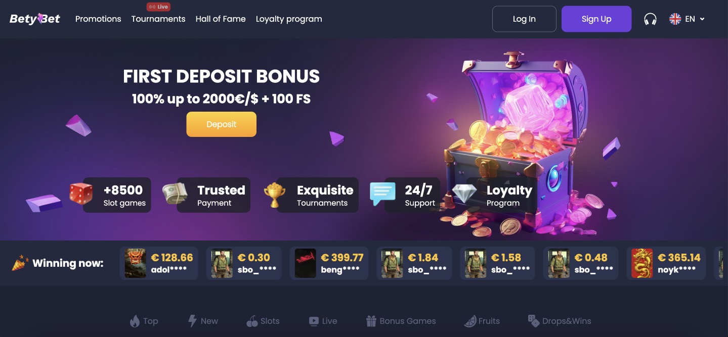Bei dem Betybet Casino handelt es sich um ein Casino der Fair Game Software KFT, welches seit 2024 in Betrieb ist und eine breite Auswahl an Top Casino Spielen und Boni anbietet. Wir haben das Angebot des Casinos getestet und stellen hier die Ergebnisse zum Online Casino Test vor.