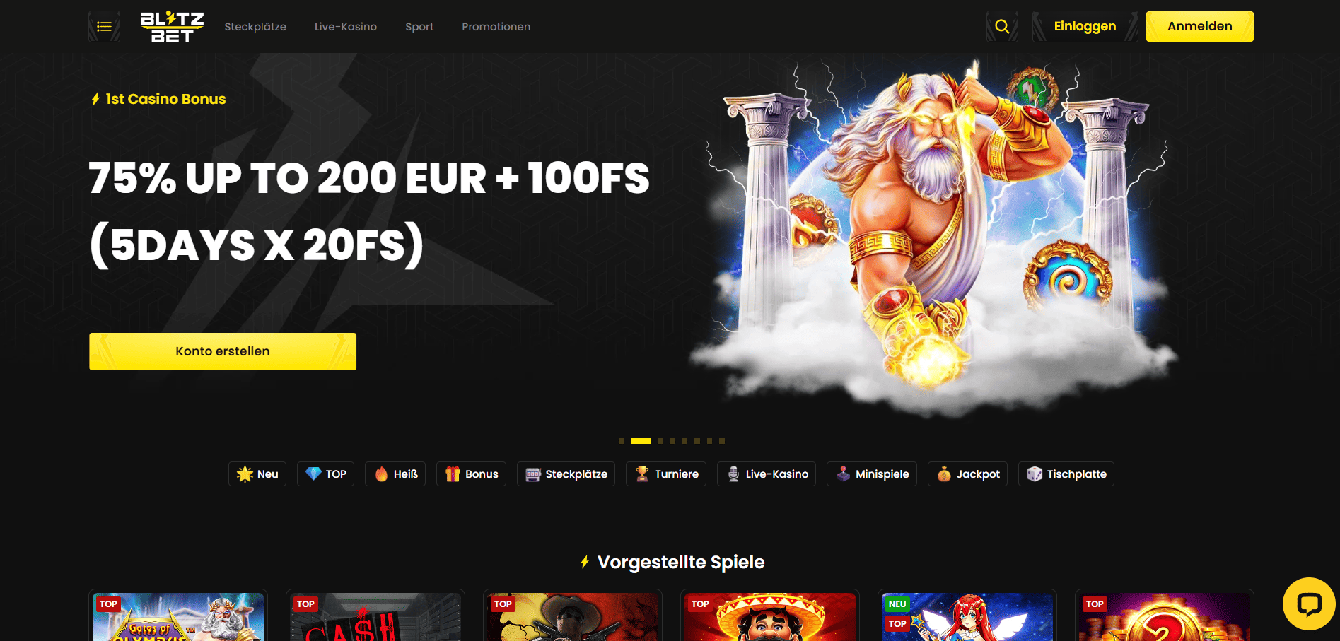 - Wie meldet man sich im BlitzBet Casino an?Sie können sich anmelden, indem Sie die Webseite betreten, ein Konto erstellen und dann Ihre E-Mail, sowie Ihr Passwort angeben. Dieser Prozess ist sehr intuitiv gestaltet und sollte zu keinen Problemen führen.