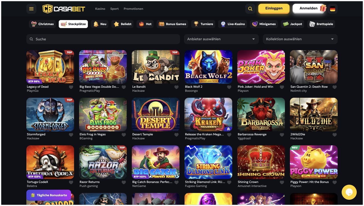 Laut eigenen Angaben finden Spieler hier über 9.000 Casino Spiele nach Ihrer CasaBet Online Casino Registrierung. Darunter befinden sich natürlich viele Online Spielautomaten, aber auch ein umfangreiches Live-Casino und schelle Spiele.