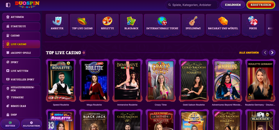 Das Online Casino bietet seinen Kunden nach der Anmeldung im DuoSpin Online Casino eine unglaubliche Auswahl von mehr als 7.000 Casino Spielen an. Hier kommen Liebhaber von Slots besonders auf ihre Kosten, denn ein Großteil entfällt auf diese Kategorie. Hier werden die Slots in folgende Kategorien unterteilt: