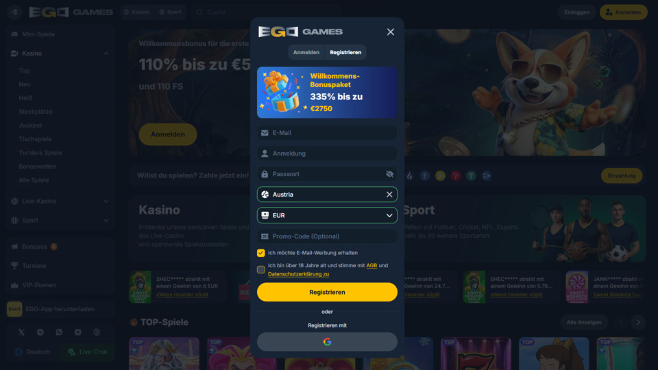EgoGames Casino – Die mobile App für österreichische Spieler