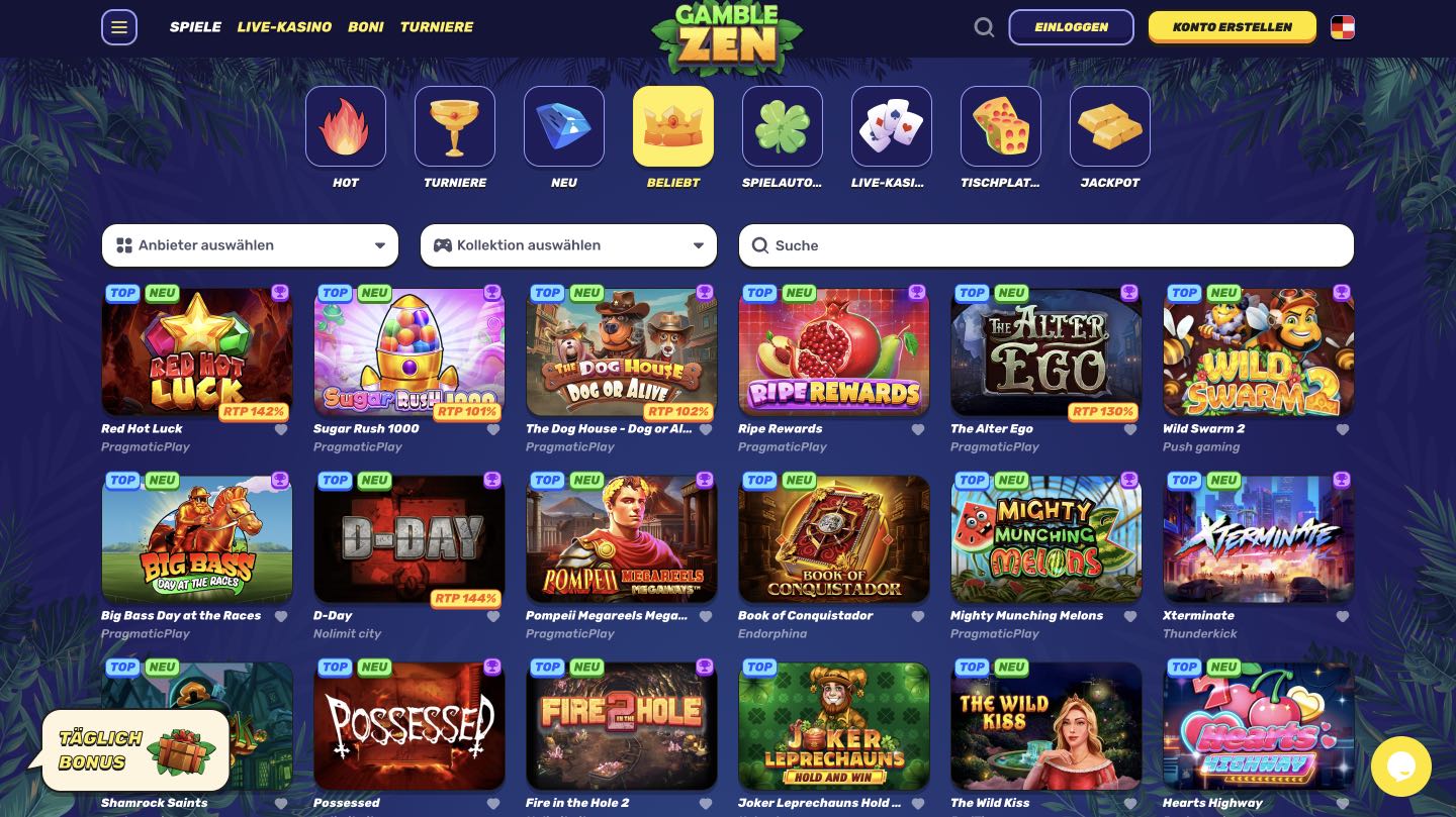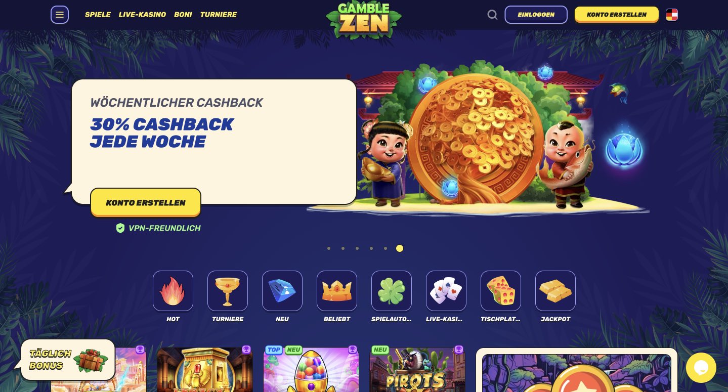 Das Gamblezen Casino wurde 2024 von der bekannten Altacore N.V. gegründet und hat seinen Kunden einiges zu bieten. Zum einen finden Sie hier erstklassige Bonusaktionen, zum anderen werden Ihnen auch tausende Spielautomaten angeboten. Finden Sie hier heraus, was das Online Casino so einzigartig macht!