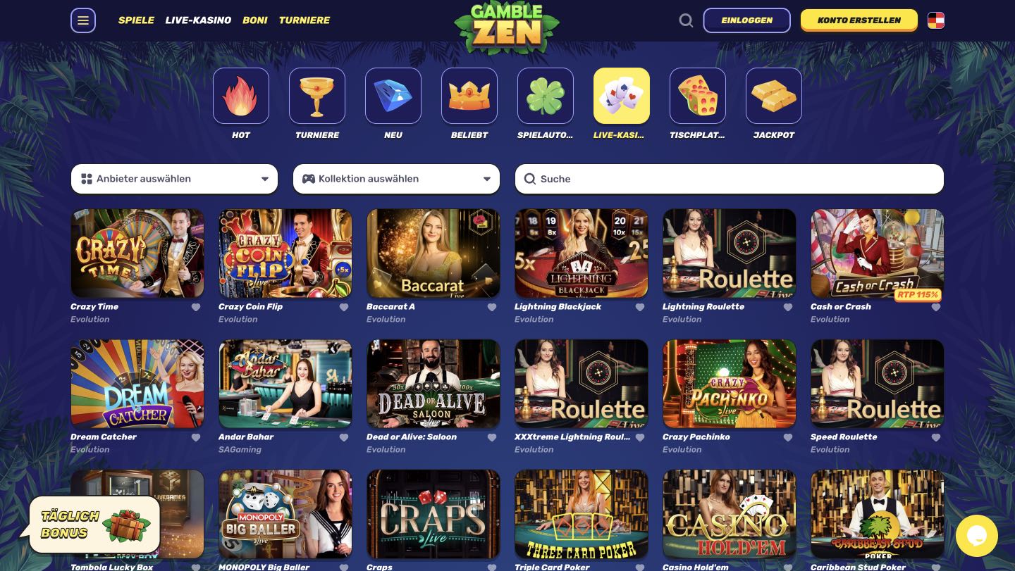 Sie können über 9.000 Casino Spiele im Gamblezen Casino Online spielen. Darunter befinden sich Slots, Tischspiele, Live-Dealer-Spiele und auch Jackpot Slots. Die Spiele können Sie auch über die mobile Version der Webseite spielen, was für gute Bewertungen des Casinos im Netz sorgt.