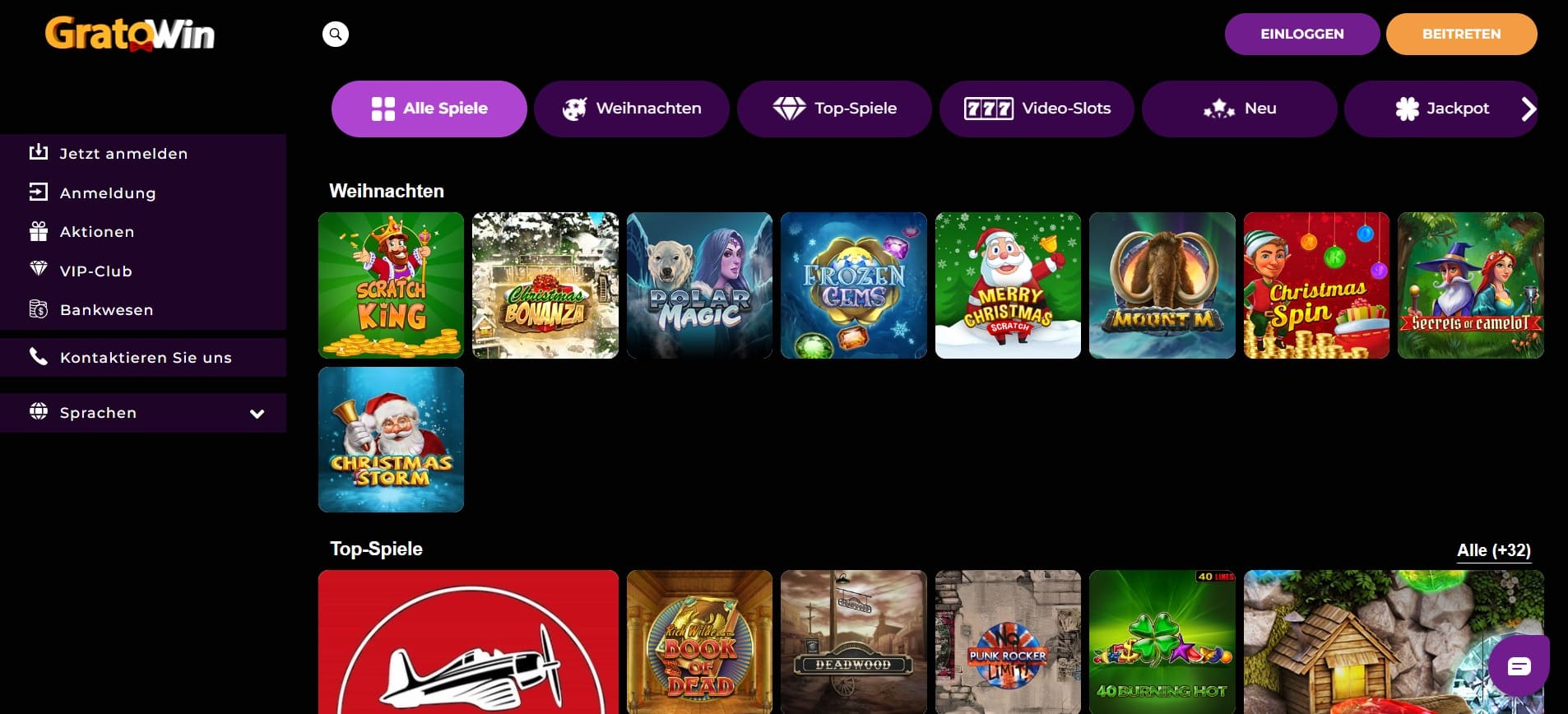 Breites Angebot an GratoWin Casino Spielen