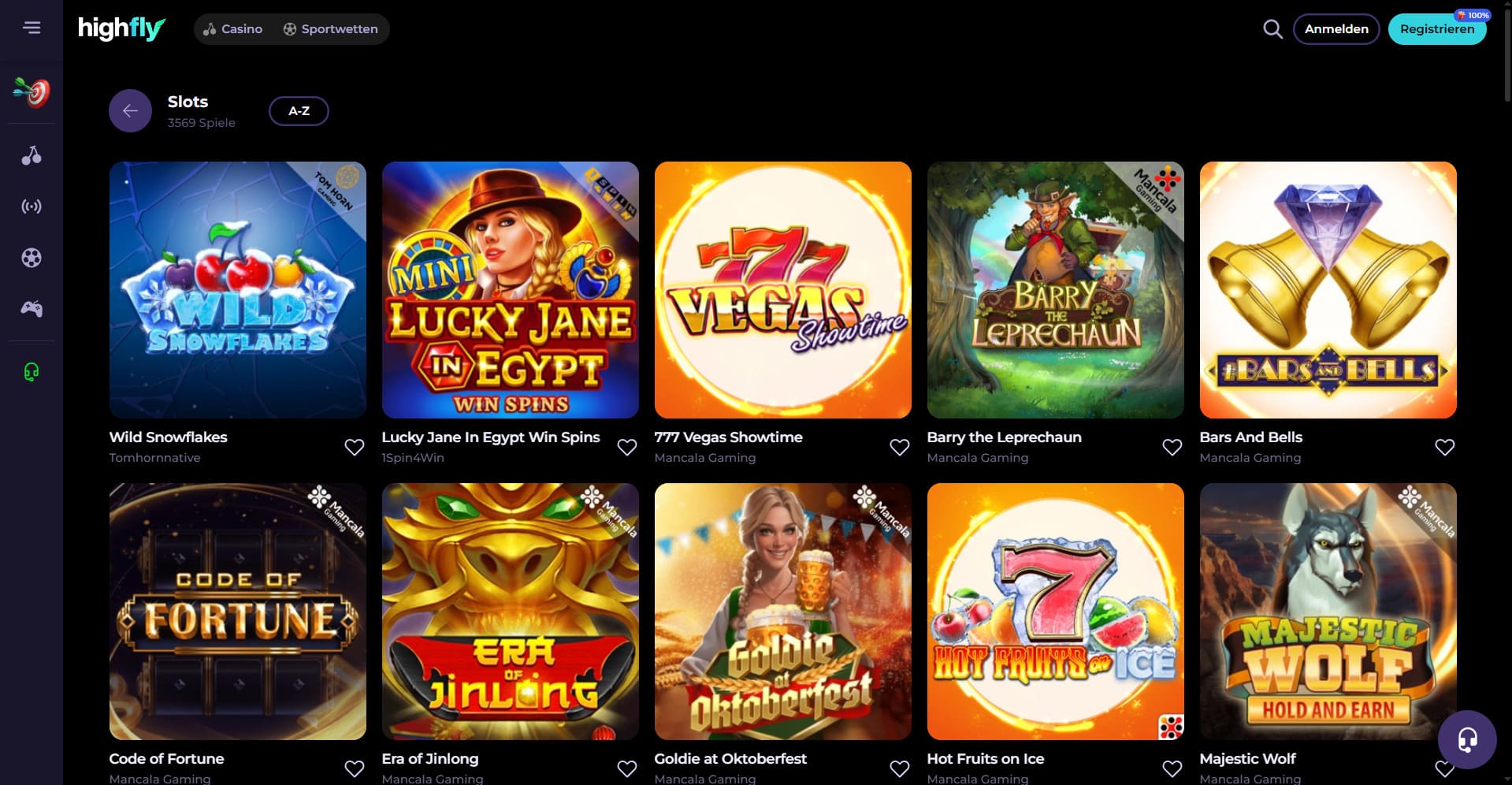 Insgesamt finden Sie mehr als 6.000 HighFlyBet Online Casino Spiele, aus denen Sie auswählen können. Mit knapp 5.000 Spielautomaten liegt der Fokus klar auf diesem Bereich, aber darüber hinaus finden Sie auch Tischspiele, ein Live-Casino, Jackpot-Spiele und Tischspiele.