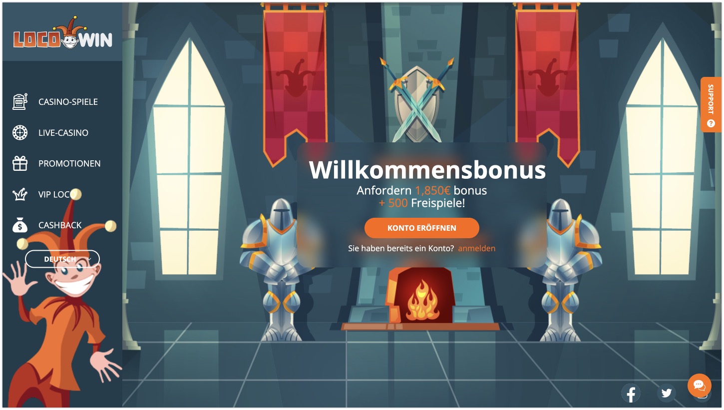 - Willkommensbonus 100 % bis zu 1850 EUR + 500 Freispiele im Locowin