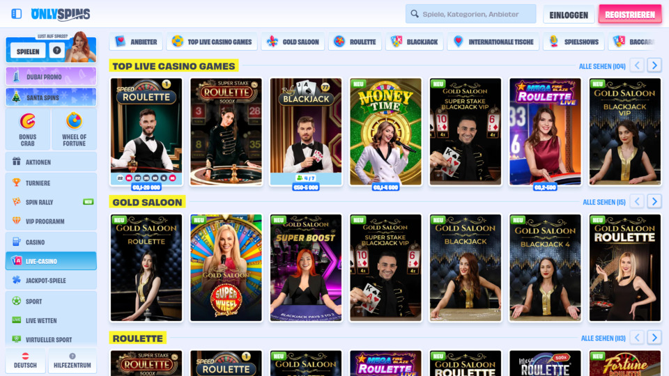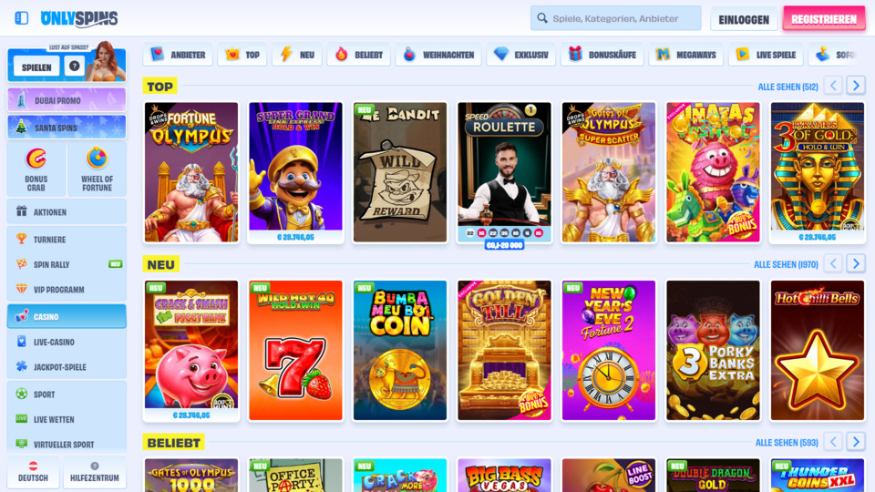 Hier eine Liste der besten OnlySpins Online Casino Spiele: