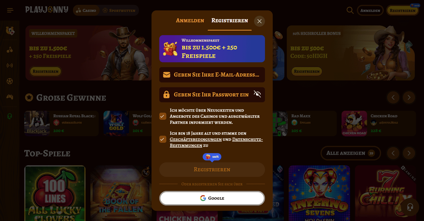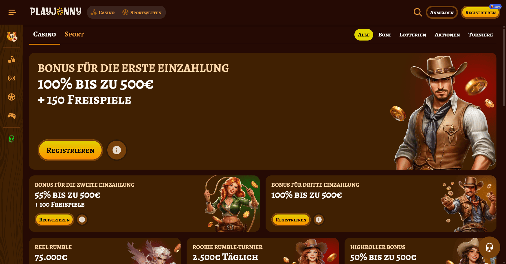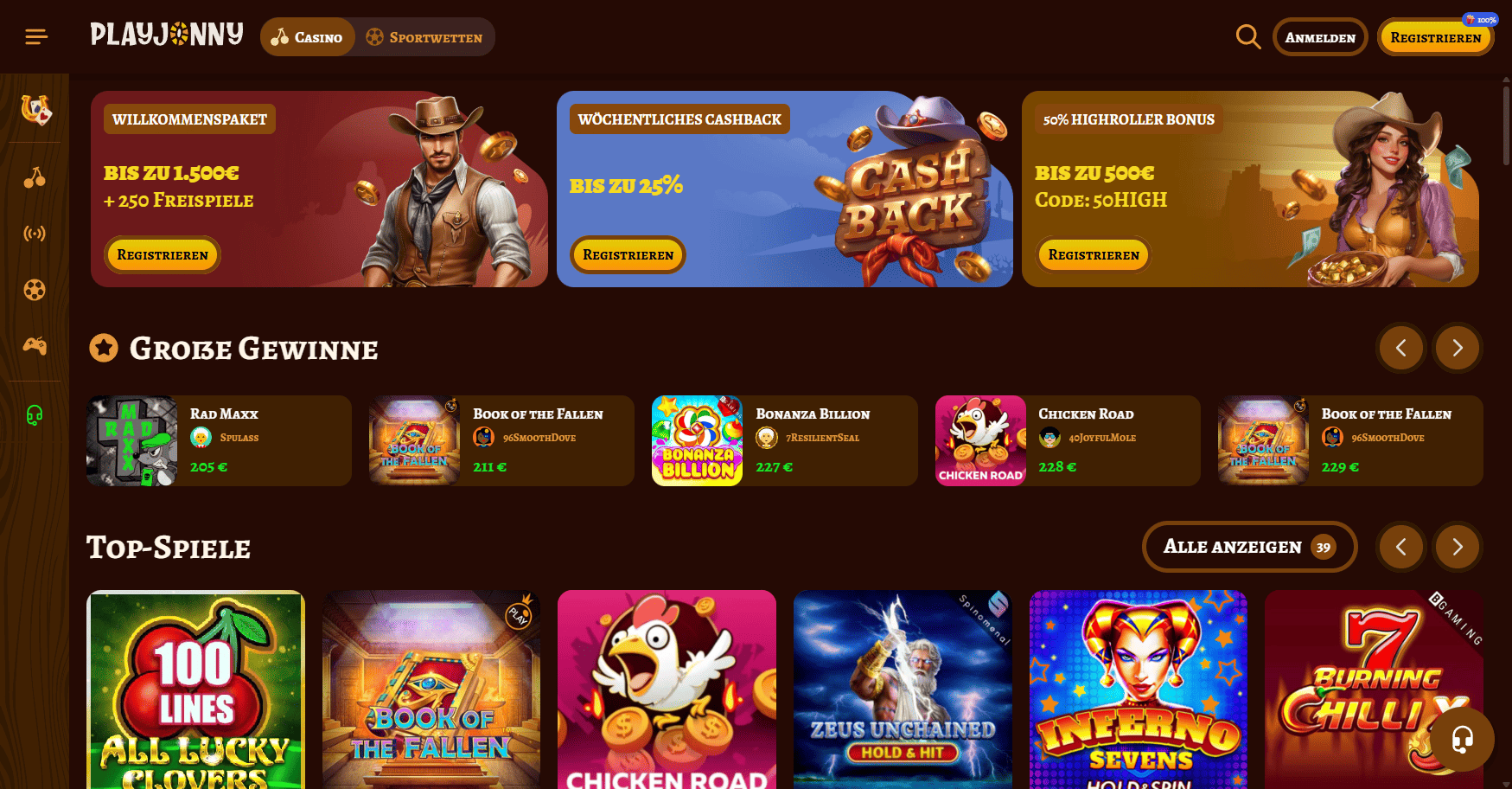 Das Playjonny Casino ist eine Plattform von der Rossobash S.R.L, lizenziert über Costa Rica und für österreichische Spieler eine interessante Option. Sie finden 6.000+ Slots von den besten Software-Studios, tolle Bonusangebote, ein VIP-Programm mit Extras, sichere und blitzschnelle Zahlungen und vieles mehr.