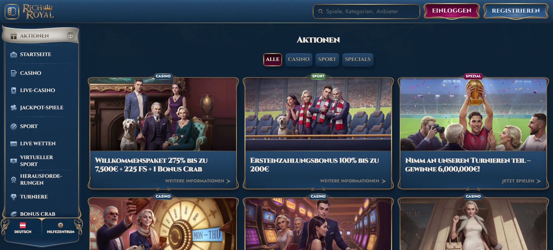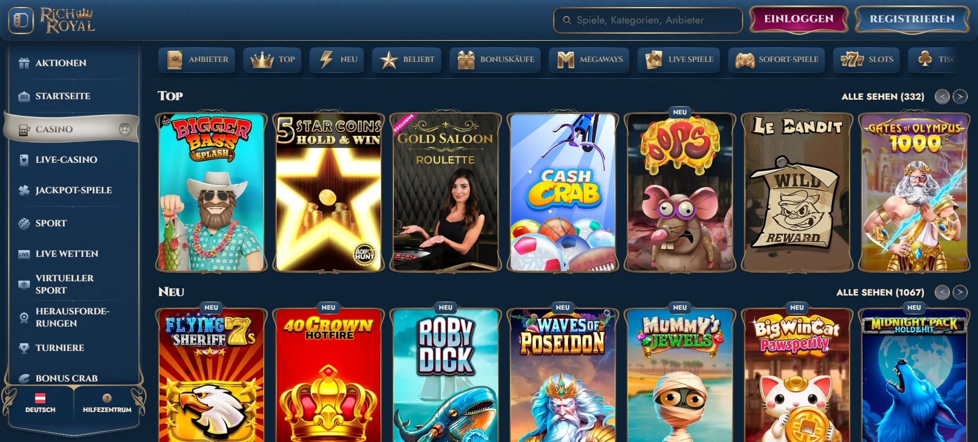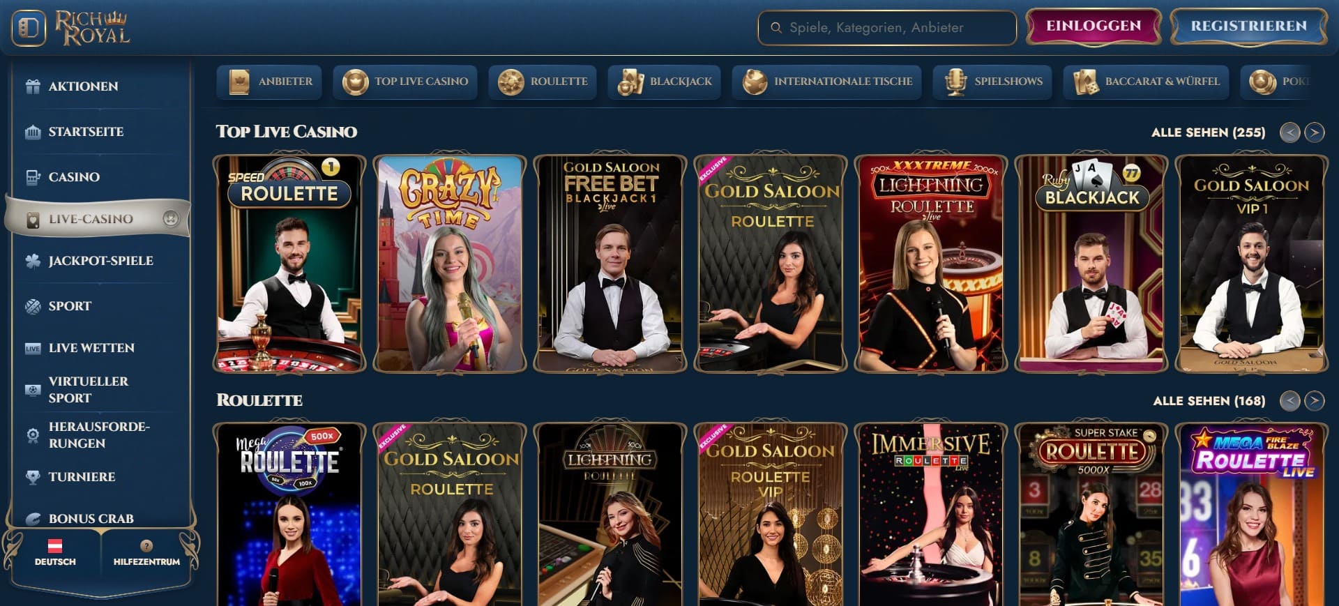 Richroyal richtet sich mit seinem Angebot gezielt an Spieler aus Österreich und punktet mit einer vollständig deutschsprachigen Plattform, kostenfreien Zahlungen und Maßnahmen rund um das verantwortungsvolle Spielen. Auch mobil überzeugt das Casino mit einer Web App und moderner Benutzerführung.