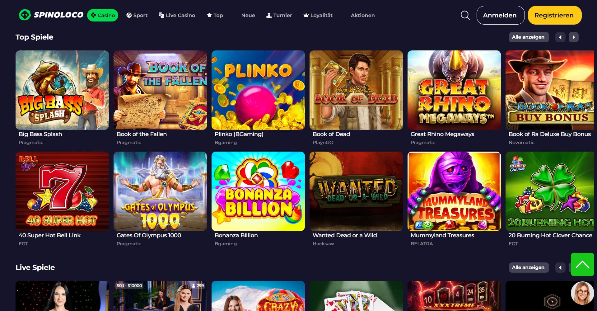 Relativ jung ist Spinoloco Casino auf dem Markt und arbeitet unter der Medial N.V. Für die Sicherheit der österreichischen Spieler ist gesorgt, und zwar durch eine Lizenz vom Curacao Gaming Board. Die Auswahl an Spielen ist nicht zu verachten und Sie können Spielautomaten, Tischspiele und die beliebtesten Live-Dealer-Spiele einfach und schnell finden.