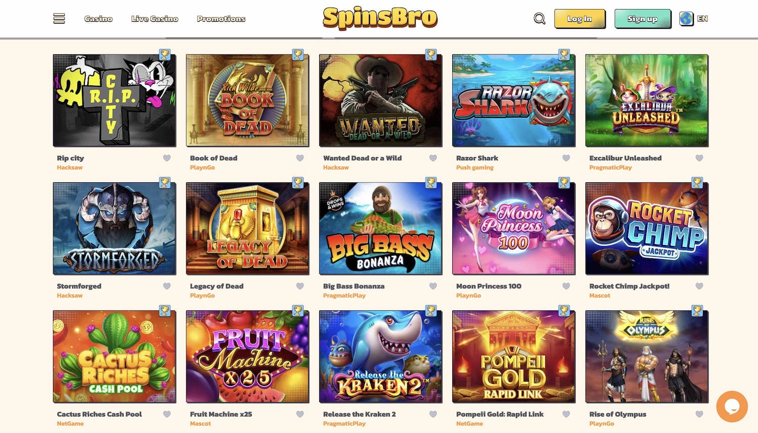 - Spieleangebot im SpinsBro Casino