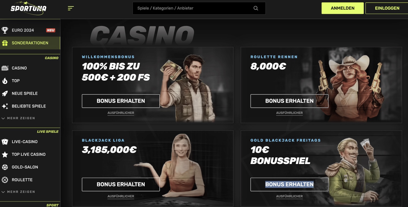Erfahren Sie alles über die Sportuna-Casino-Plattform: ihre Spielesammlungen, Bonusangebote, Zahlungsmöglichkeiten und vieles mehr.